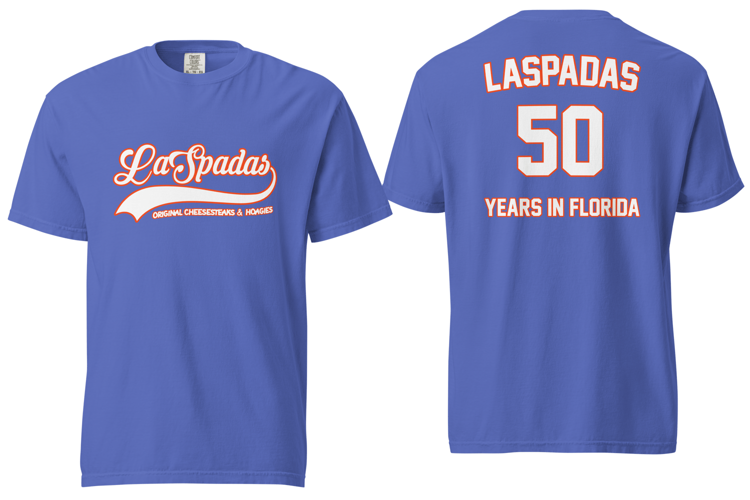 Laspada's 50 Years Orange and White on Blue